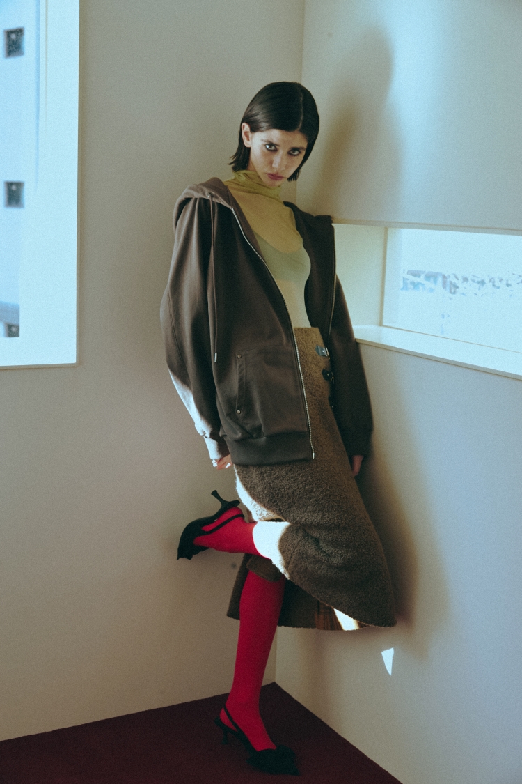 - CHeOM 로고가 프린팅 된 흑니켈 후드끝팁을 사용했으며, 목 뒷편에 있는 FW 개발 가죽 패치로 디테일을 더했습니다.